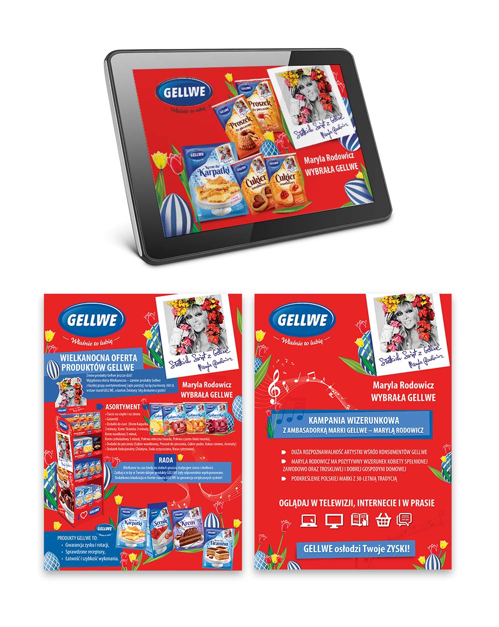 Projekt materiałów reklamowych, materiałów tradowych dla opakowań firmy Gellwe.