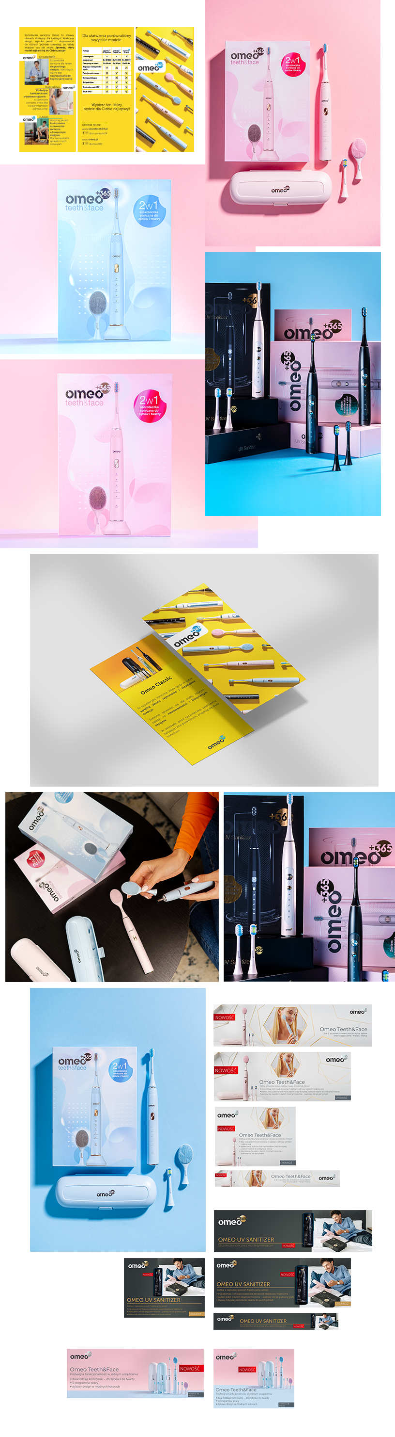 Omeo projekt dwóch linii opakowań, ulotek promocyjnych oraz banerków sprzedażowych na allegro.