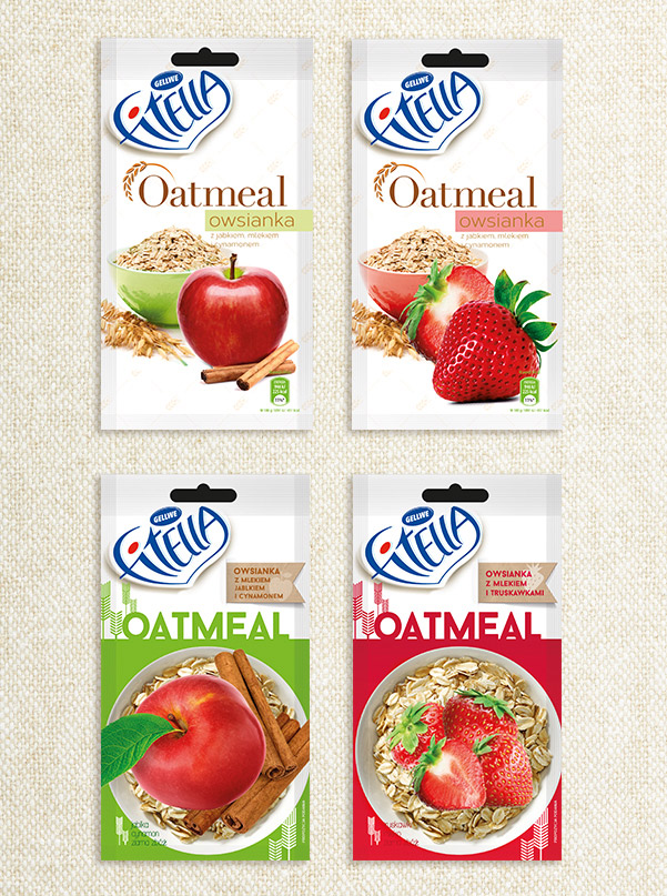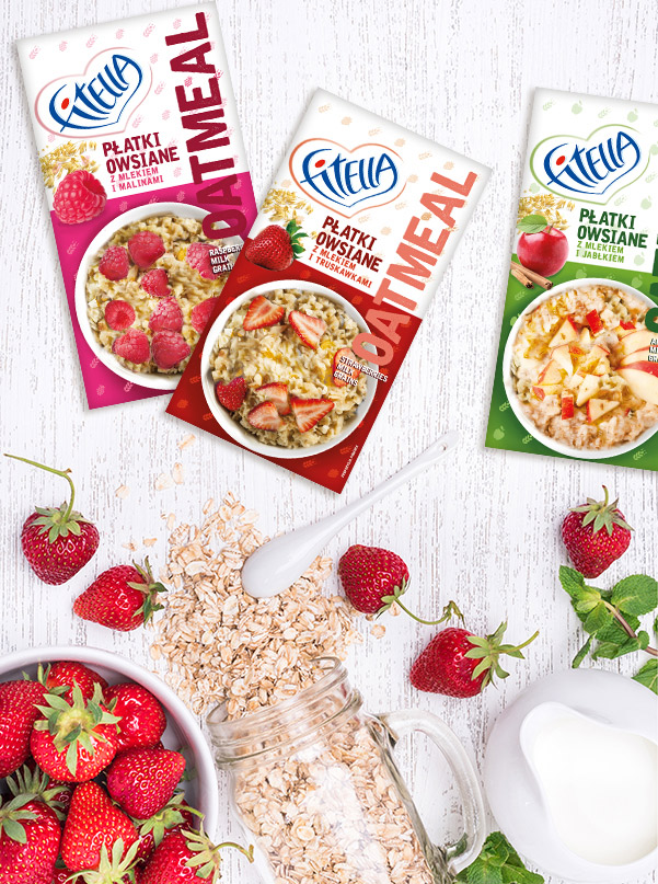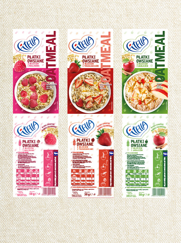 Projekt opakowań na owsiankę dla marki Fitella.