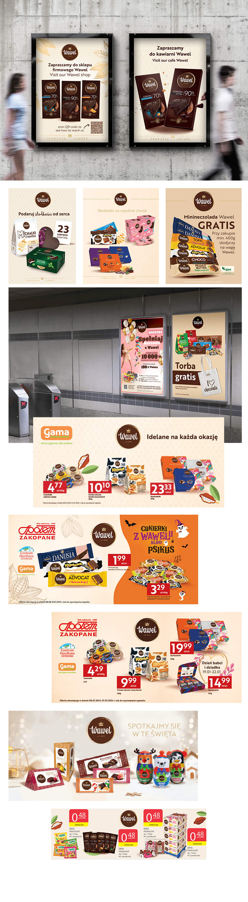Wawel producent słodyczy dla którego zaprojektowaliśmy szereg reklam, banerów, plakatów, billboardów, materiałów reklamowych, elementów do gazetek promocyjnych.